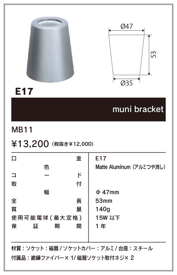 - 材質:磁器/ソケットカバー:アルミ/台座:スチール